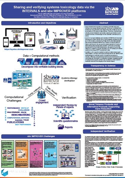 Large international programs increasingly generate larger and complex toxicology-relevant data sets. Moreover, industrial R&D endeavors may generate even larger amounts of data but are not as proactive in the area of data sharing. Therefore, sharing these industry-owned datasets represents a great opportunity to push forward frontiers of knowledge for the scientific community as a whole. A proof of concept database and website ('INTERVALS') has been developed to share the results from in vivo inhalation studies as well as in vitro studies conducted by Philip Morris International R&D that assess potential Modified Risk Tobacco Products (MRTP). Data modeling took into account the latest standards in terms of data sharing and reproducible research. Given the successful development of the initial infrastructure, the goal is to grow this initiative to establish a public repository for 21st century pre-clinical systems toxicology MRTP assessment data. In addition, with a goal to maintain scrutiny in data analysis and interpretation, we have developed and applied the sbv IMPROVER methodology to verify the output of research processes in the industry. Whereas computational methods are benchmarked using computational challenges, a verification program engaging panels of independent experts confirms the excellence of the scientific methods used and the integrity of the results shared.